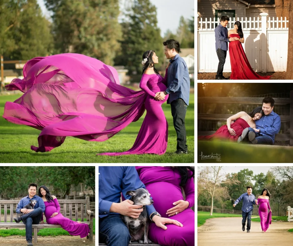 For their maternity session, they chose Hap Magee Dog Park, a cute little park in Danville. Since they wanted to bring their dog Bella along, we needed a dog-friendly park and this one was the perfect match. We had a beautiful sunny day. Marice and Wayne danced and had fun while I grabbed my camera and captured their awesome relationship and their excitement for this little boy that was about to join their family. Marice's bump looked perfect in all three gowns!